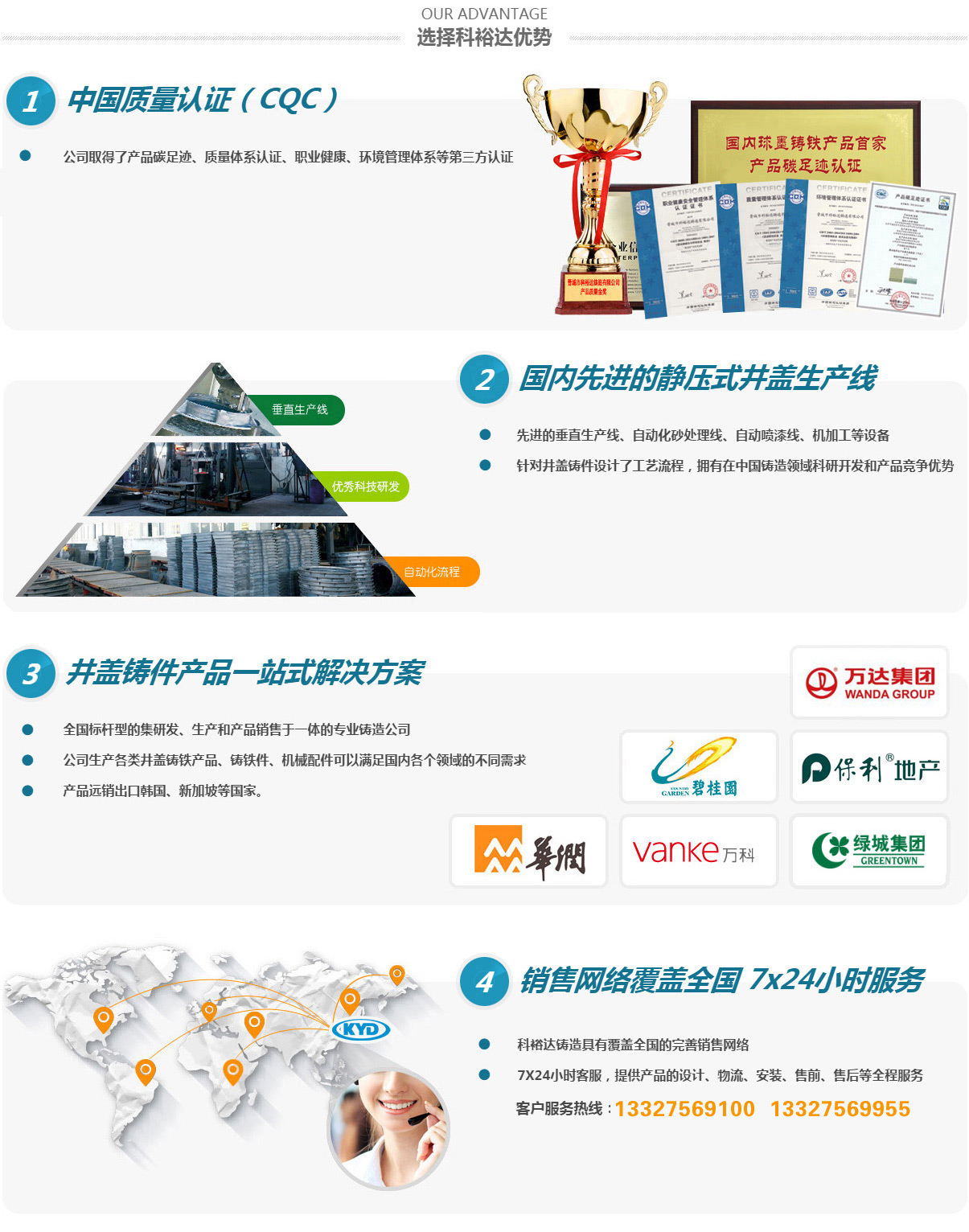 晉城市科裕達(dá)鑄造有限公司,位于山西省晉城市南村鎮(zhèn)智能綠色鑄造創(chuàng)新產(chǎn)業(yè)園區(qū),成立于2014年2月,注冊(cè)資金2億元整,產(chǎn)量10萬噸。經(jīng)過這些來的發(fā)展,已經(jīng)成為全國集研發(fā)、生產(chǎn)、銷售各類球墨鑄鐵井蓋、箅子產(chǎn)品于一體的專業(yè)鑄造公司,是已知國內(nèi)較大的球墨鑄鐵井蓋生產(chǎn)基地。2016年10月,公司順利通過了二級(jí)安全生產(chǎn)標(biāo)準(zhǔn)化的評(píng)審,正式成為一家二級(jí)安全生產(chǎn)標(biāo)準(zhǔn)化企業(yè)。2017年3月,山西省安全生產(chǎn)監(jiān)督管理局授予公司2016年冶金工貿(mào)行業(yè)“安全生產(chǎn)先進(jìn)單位”稱號(hào)。2017年11月被山西省中小企業(yè)局授予“專精特新”中小企業(yè)榮譽(yù)。2020年8月被認(rèn)定為國家高新技術(shù)企業(yè)。2021年5月被中國鑄造協(xié)會(huì)認(rèn)定為“單項(xiàng)冠軍企業(yè)”。2021年9月被山西省中小企業(yè)局授予“專精特新小巨人”企業(yè)榮譽(yù)。2022年被中國鑄造協(xié)會(huì)認(rèn)定為第四屆鑄造行業(yè)排頭兵企業(yè)。2023年7月被工信部認(rèn)定為“國家級(jí)專精特新小巨人”企業(yè)榮譽(yù)。2024年被省工信廳認(rèn)定有“省級(jí)綠色工廠”及“省級(jí)企業(yè)技術(shù)中心”。